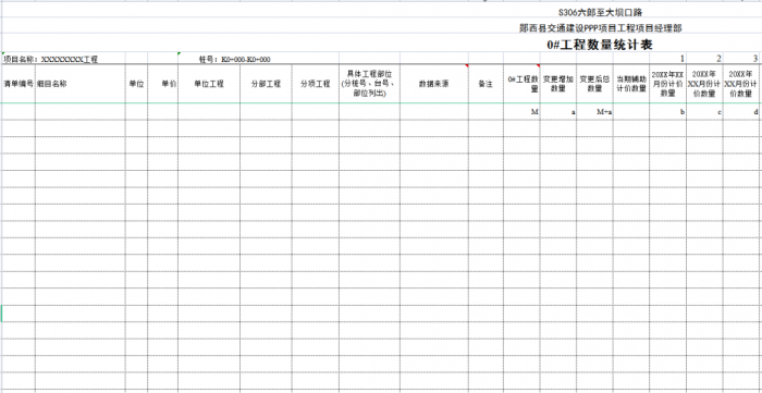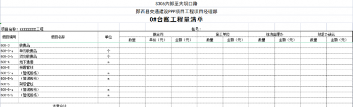 “0#”臺賬按單位、分部、分項工程劃分標(biāo)準(zhǔn)編制,可以將計量支付與質(zhì)量檢驗評定有機結(jié)合起來,這樣可以使質(zhì)檢、測量、實驗、計量等部門的內(nèi)業(yè)工作都在同一個規(guī)則下進行,提高了整個項目(合同段)內(nèi)業(yè)管理的效率。